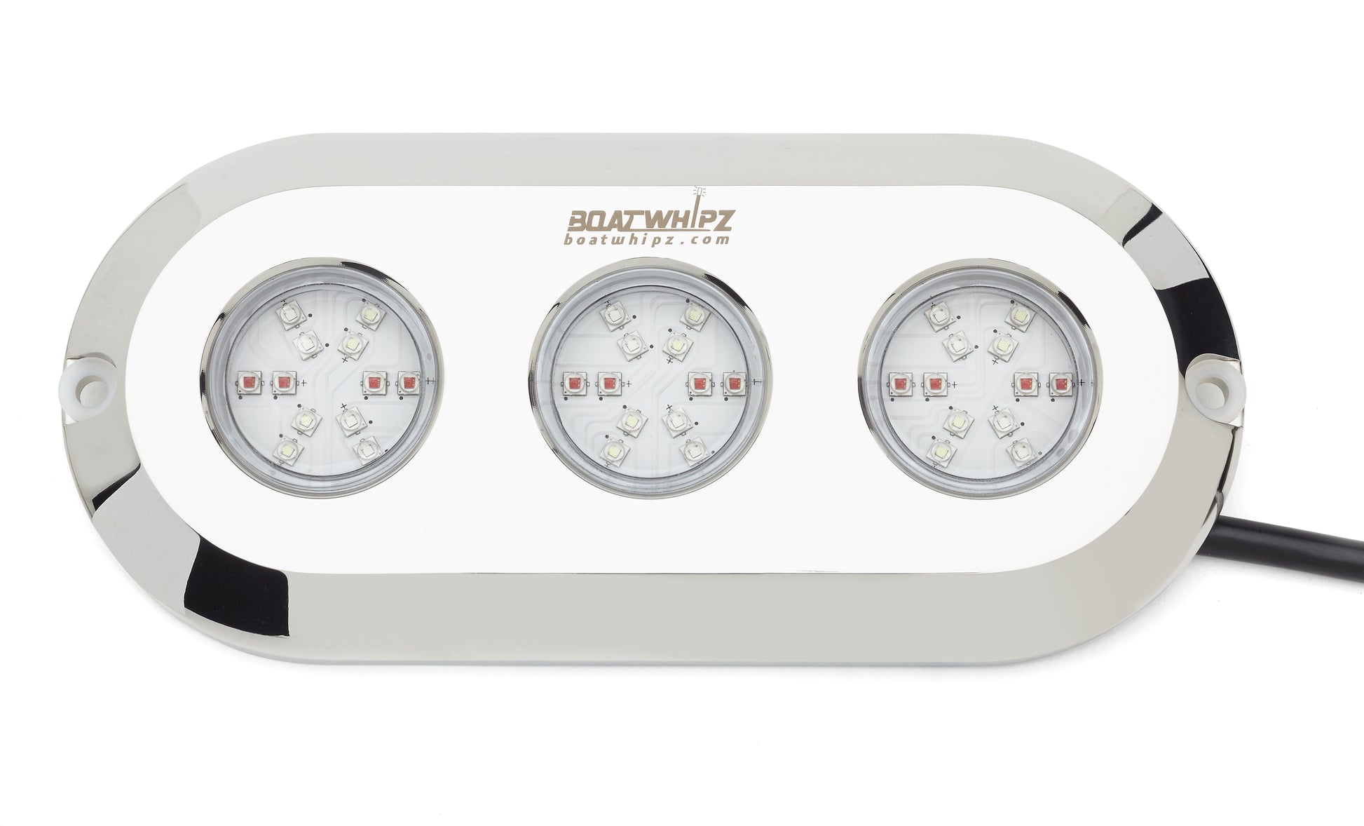 This underwater light allows you to light up the transom of your boat. It is RGB - therefore you can completely change the colors from an app on your phone or remote control. BoatWhipz offers either control box for an additional $57.99