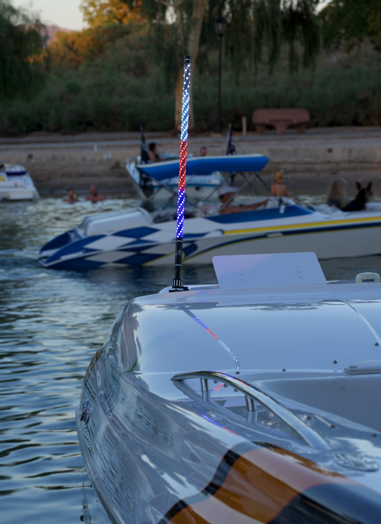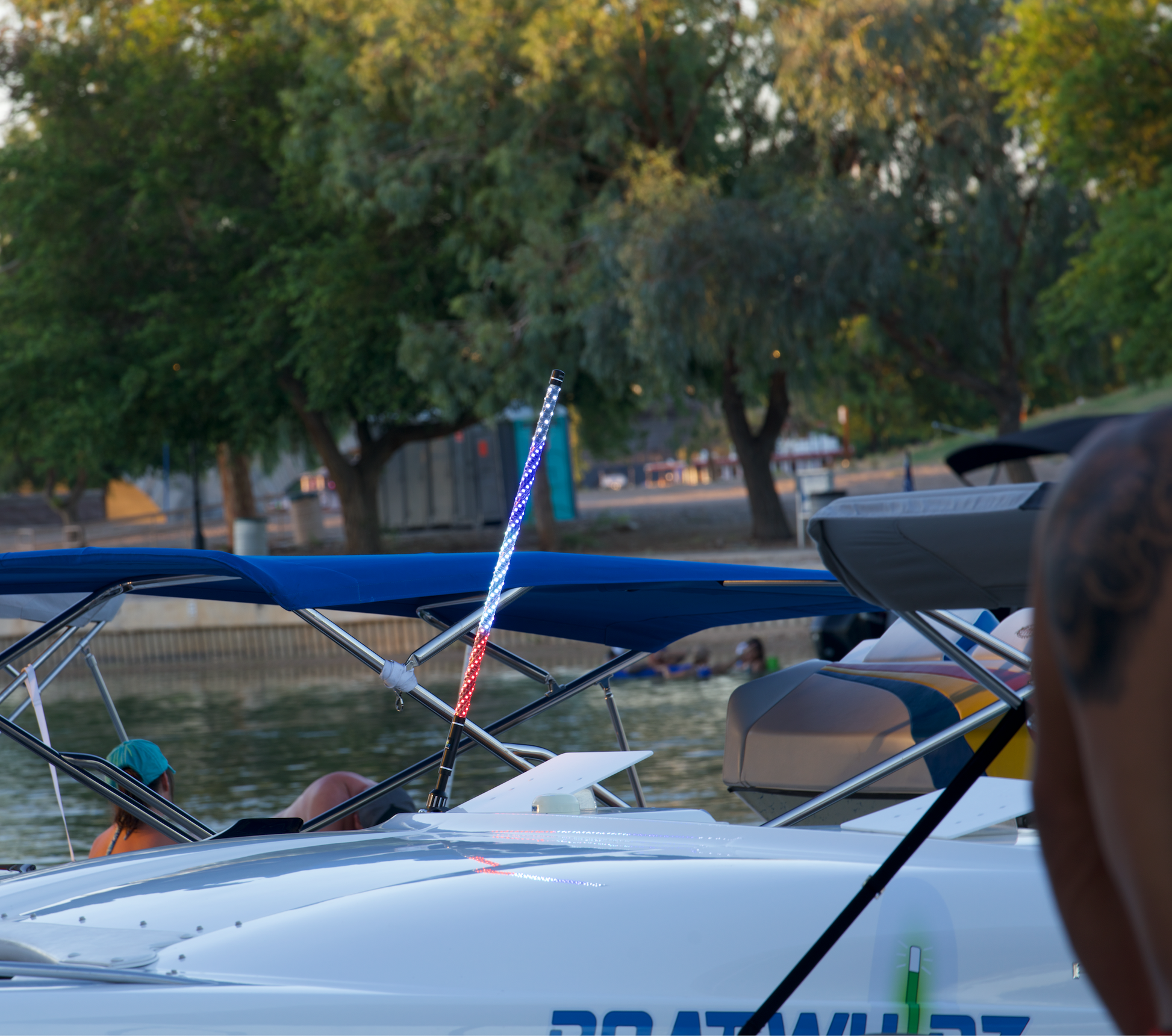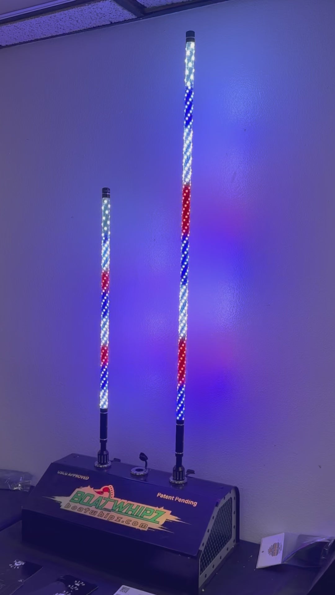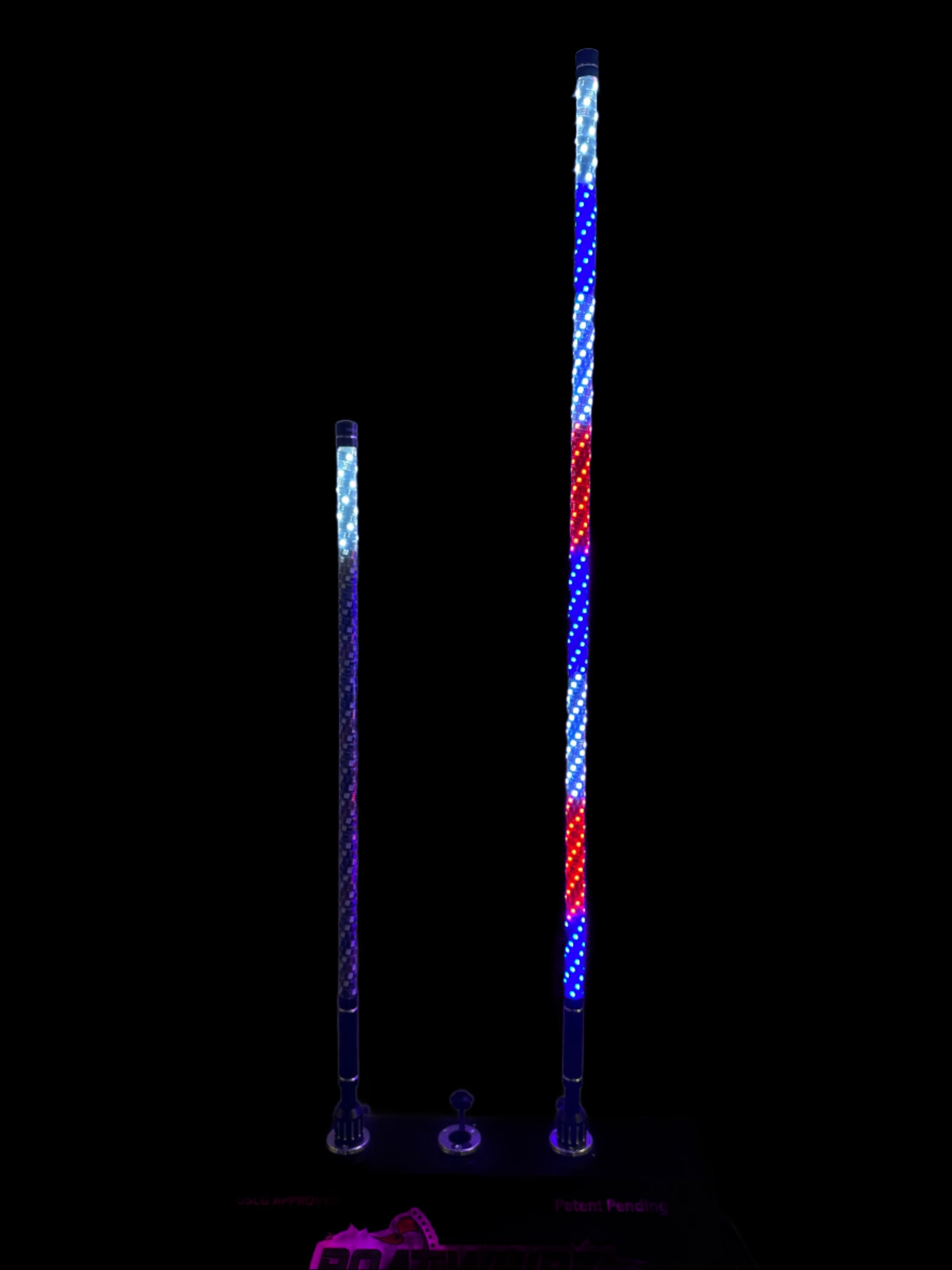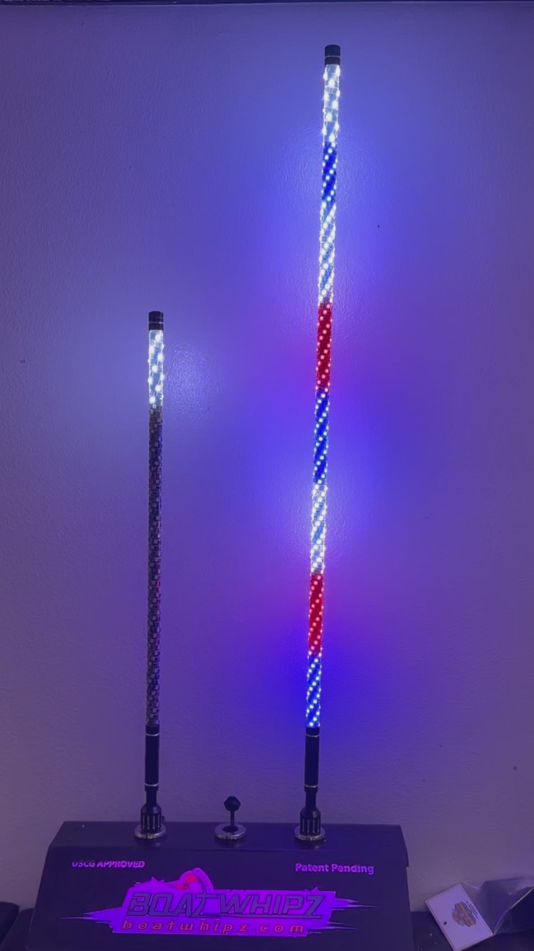 Introducing the BRIGHTEST Boatwhip available on the market today. This colorful spiral wound whip also functions as a stern light! You will be mesmerized by all of the colors and design options you have to choose from. Simply download the Bledim app and pair to your Boatwhip. From there you can choose from hundreds of cascading light options, colors, and speeds. You will also have the ability to turn off the colored lights and just use the upper stern light!